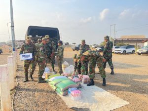 ឧត្តមសេនីយ៍ត្រី អ៊ុំ សុភា មេបញ្ជាការ តំបន់ប្រតិបត្តិការសឹករងកំពង់ឆ្នាំង បានដឹកនាំនាយទាហាន និងក្រុមការងារអង្គភាព បានចុះជួបសំណេះសំណាល ជាមួយ កងកម្លាំងរបស់អង្គភាព តំបន់ប្រតិបត្តិការសឹករងកំពង់ឆ្នាំង និង កងពលតូចលេខ៧០ ដែលកំពុងបំពេញបេសកកម្មបង្ក្រាបបទល្មើសនេសាទ នៅក្នុងភូមិសាស្ត្រខេត្តកំពង់ឆ្នាំង និង បាននាំយក:នៅ -អង្ករ ៣០០គីឡូក្រាម