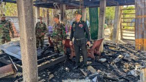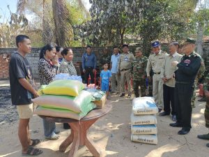 ឯកឧត្តម ឧត្តមសេនីយ៍ត្រីយ៍ អ៊ុំ សុភា មេបញ្ជាការតំបន់ប្រតិបត្តិការសិករងកំពង់ឆ្នាំងនិងក្រុមការងារមនុស្សធម៌នាំមកយកអំណោយដ៏ថ្លៃថ្លារបស់សម្ដេចមហាបវរធិបតី ហ៊ុន ម៉ាណែតនិងលោកជំទាវ ជូនដល់ពលរដ្ឋត្រូវអគ្គីភ័យឆេះអស់ទាំងស្រុង។